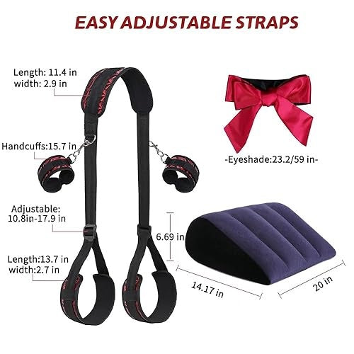 Completing the set is a premium inflatable wedge pillow, crafted from durable, body-safe material. It provides ergonomic support, allowing you to explore a wide range of positions with ease and comfort. Whether you are new to restraint play or more experienced, the design is intuitive, soft on the body, and simple to use.
